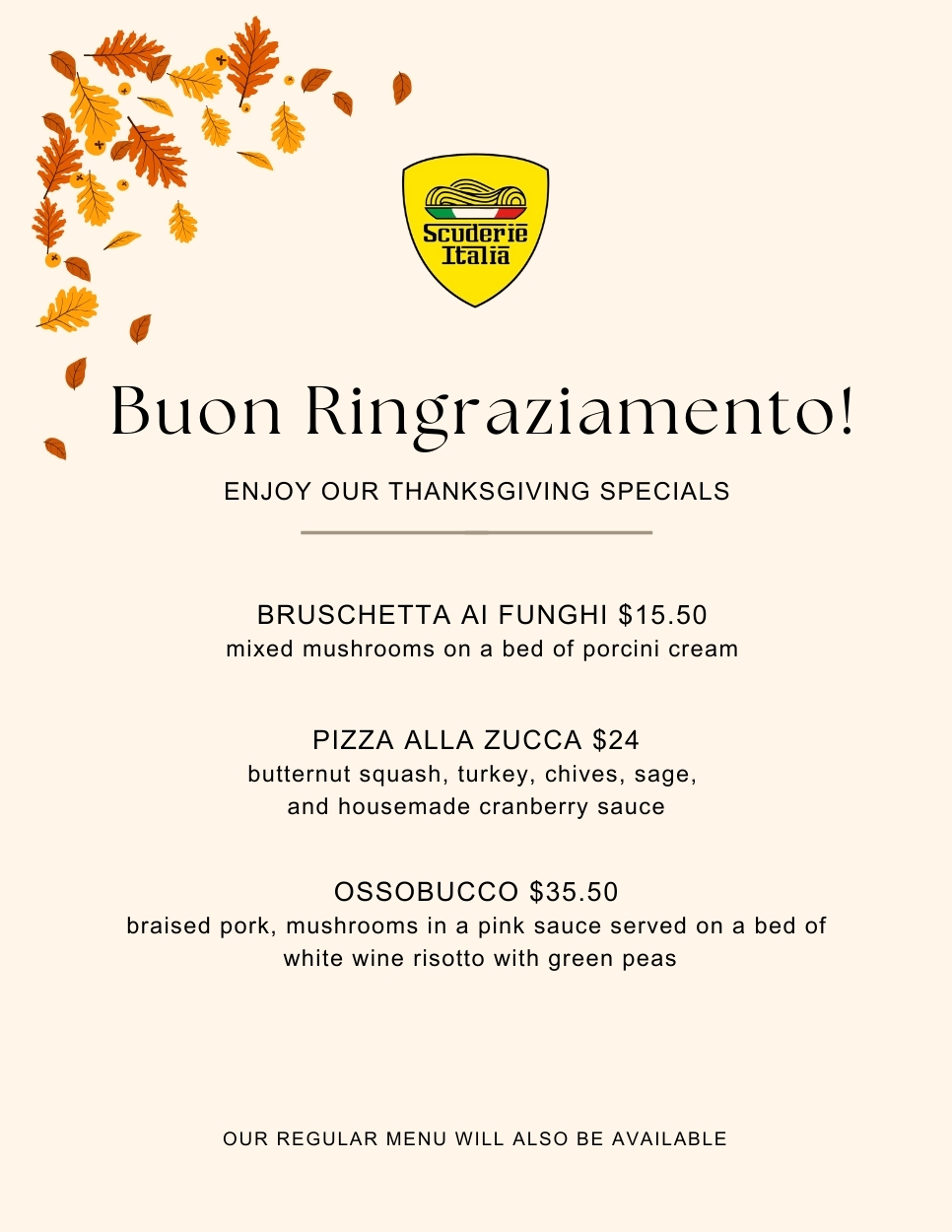Our love of wine is expressed through the thoughtfully crafted wine list that we carefully pair with our traditional Italian fare. Every evening is set up for an unforgettable meal at Scuderie Italia!